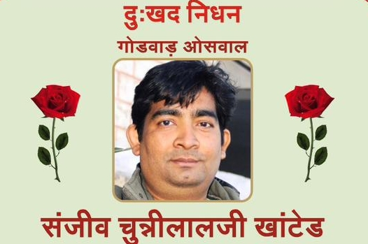 संजीव चुन्नीलालजी खांटेड उम्र : 51 वर्ष, खुडाला (राज.) निवासी का शुक्रवार, दिनांक 19 मई 2023 को अरिहन्त शरण हुआ है ।