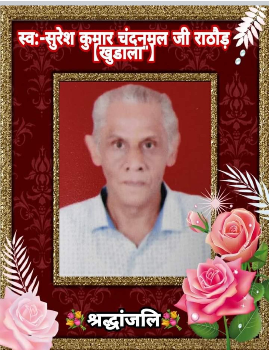 मरुधर मे खुडाला निवासी हाल कल्याण स्वः श्री निहालचंदजी कपूरचंदजी भंडारी, उम्र ७५ का दुखद निधन दिनांक ३०/०५/२०२४ गुरुवार को हुआ।